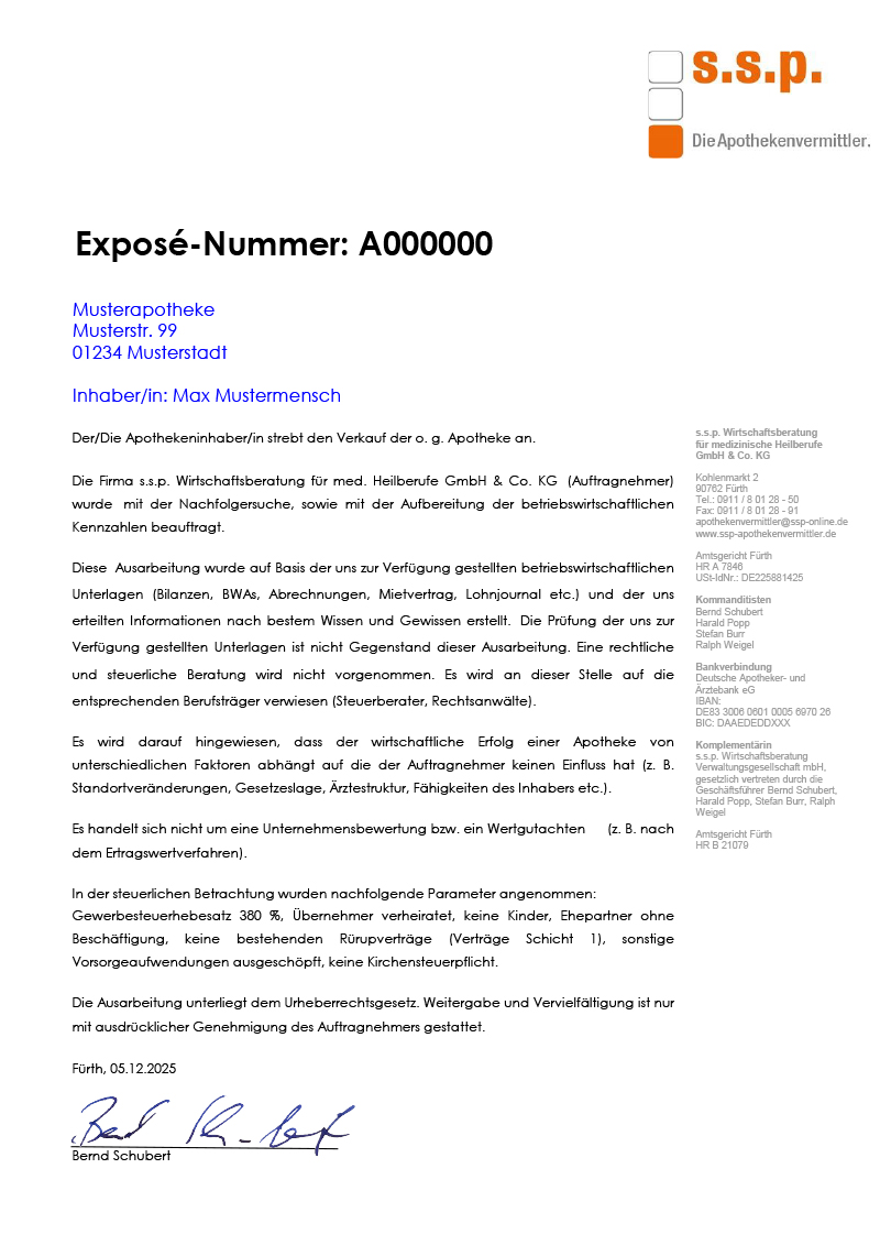 Das Apothekenexposé inkl. Wirtschaftlichkeitsanalyse
